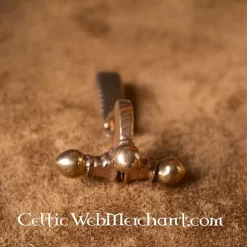 A handmade Roman crossbow fibula. This Roman fibula is based on an original from the 2nd century AD. Crossbow fibulae like this were used all over the Roman Empire between the 1st and 3rd century AD. This fibula is made of bronze and measures 1,5 x 3 x 4,6 cm. It weighs approx. 13,7 grams.