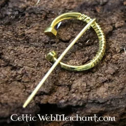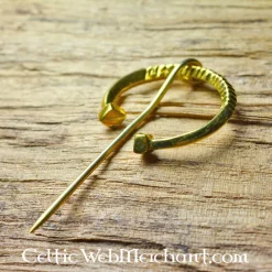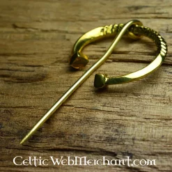 This brass brooch is made after originals worn by the Celts, Picts, Vikings and Anglo-Saxons. The brooch measures 4 cm and is made of 4 mm thick, twisted brass.
