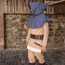 This chaperon is made after several 14th and 15th century manuscripts, pen drawings and sculptures. Chaperons like this were worn all over feudal Europe. They protect the head, neck and shoulders from the rain and cold. Chaperons were worn by people from all classes in society and both sexes.