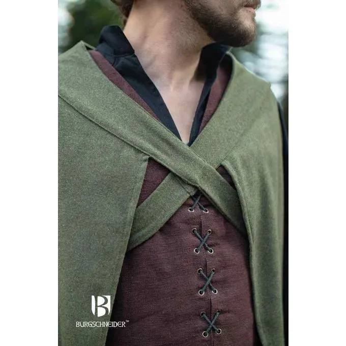 This cloak can be worn in different ways. It can be closed with strips on the chest. The cloak has an opening on both sides through which you can do the arms. This cloak is ideal for, for example, an epic Assassin’s outfit