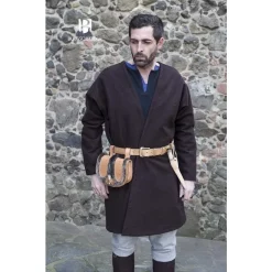 This overdress can be worn over a simple even dress to create a special look. It has a remarkable neckline and an embroidered symmetrical pattern around the neck and at the bottom of the skirt. At the sides of the dress are laces to tighten it for a close-fitting model. A perfect addition to a LARP, Cosplay or festival outfit.