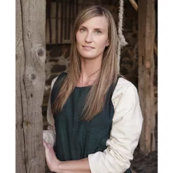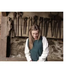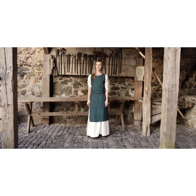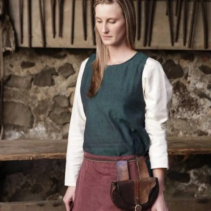 This hangeroc is a replica of the 9th century original excavated in Haithabu. The hangeroc was the garment that Viking women worn over their dress and they brought this costume to Iceland, Ireland, Russia and the British isles. The hangeroc was often fastened to the dress with shield brooches or disc fibulae.