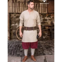 Tunics like this were basic garments worn by men from the Early to Late Middle Ages all over Europe. They can be worn separately or as an undertunic. In cold climates they were combined with trouseres and leg wrappings.