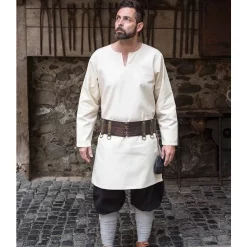 Tunics like this were basic garments worn by men from the Early to Late Middle Ages all over Europe. They can be worn separately or as an undertunic. In cold climates they were combined with trouseres and leg wrappings.