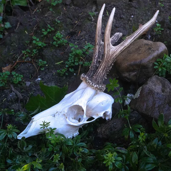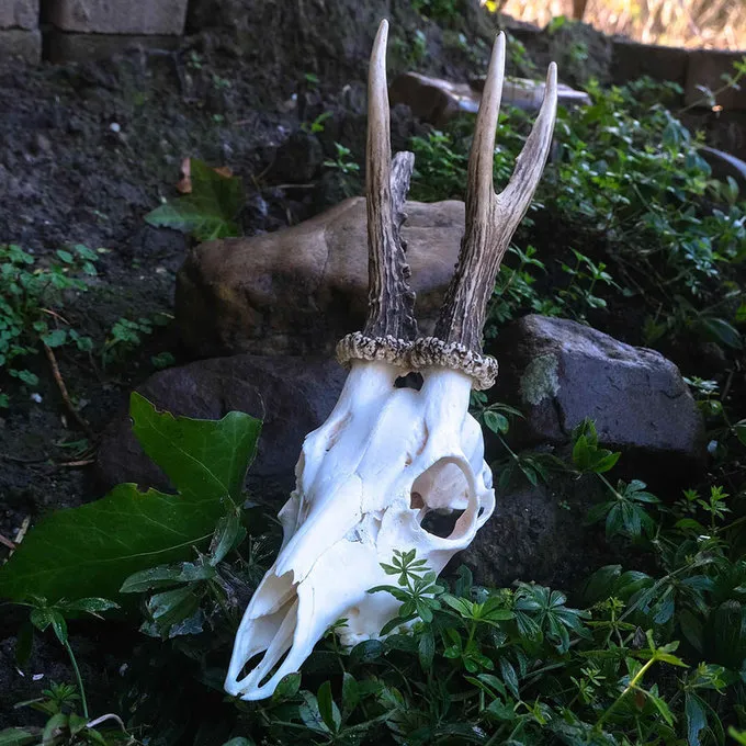 This deer skull is perfect as decoration or for crafting. You can paint it, hang it from a druid staff, use it for your costume or as a headdress, use it for pagan photoshoots, Viking Cosplays and much more. The skull has antlers and jaws. Please note: this is a natural product, so the skull may differ from the photo.