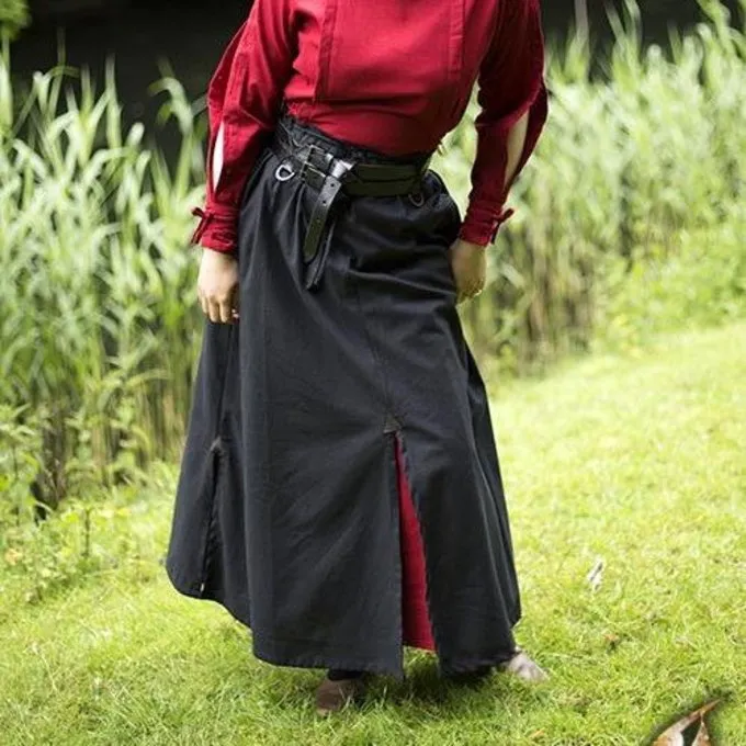 This combat skirt is perfect to wear for Martial Arts, cuttings tests and for LARPing warriors and assassins. This skirt is made of cotton, falls down to the ankles and has cotton laces to tie it so that it is always comfortable around the middle. It can be worn by both men and women and splits at the front and back so you can move freely during running and fighting. The splits are reinforced with leather strips so that the skirt does not tear.