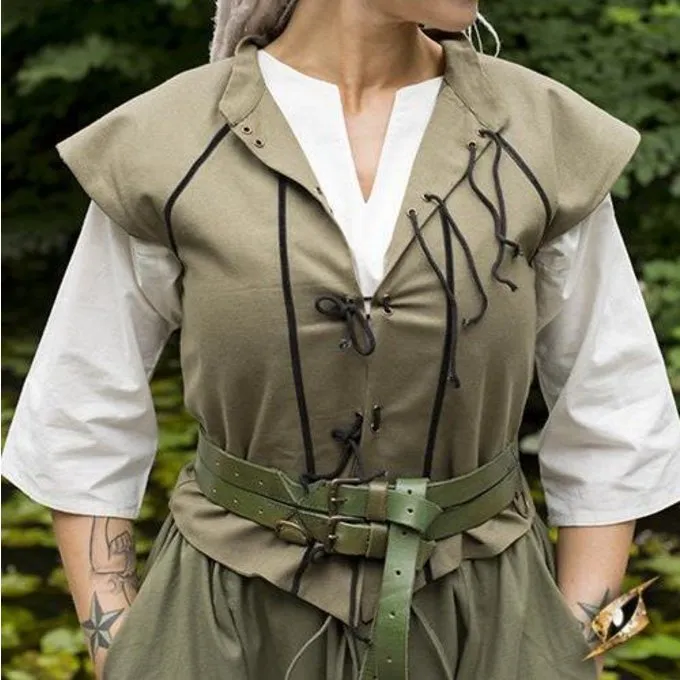 This doublet is decorated with black satin lining. It has cords for closing. It is possible to wear the doublet half opened in case of wearing a large shirt with decorations underneath. This doublet is available in the sizes XXS-XL