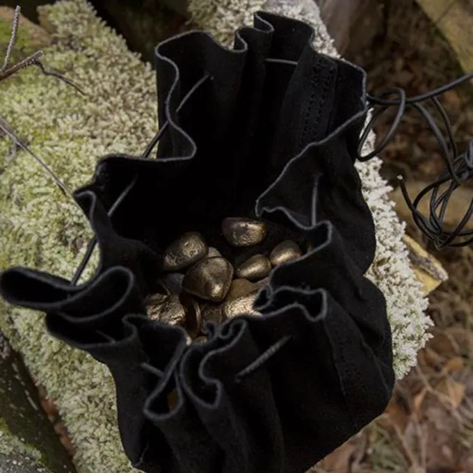 A handy leather pouch to hang on your belt! Pouches like this were used from Antiquity until the eighteenth century for everyday necessities such as coins. Originals can be seen in illuminated medieval manuscripts, on stained glass windows, medieval statues and, for example, Renaissance Italian paintings. The pouch has a sturdy leather cord to tie it tight and fasten it to the belt. The pouch itself is made of soft suede leather. The seams are very sturdy so that the pouch lasts for a long time without tearing.