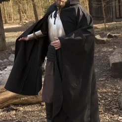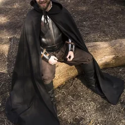 This cloak is made of cotton twill and protects you against rain, wind and the sun when you are out all day. The cloak offers a good mobility for the arms so that you can also wear it in battles. With the cotton lace you can fasten the cloak around your neck. On the back it has a hood to protect the head. This long cloak falls to the ankles or shoes, so you can even sleep in it. Cloaks like this were worn from the early Middle Ages to the Renaissance so it is suitable for re-enactment of several historical periods and also for fantasy and LARP.