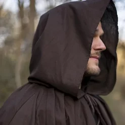 This cloak is a universal model that was worn from the early Middle Ages to the Renaissance. It reaches almost to the ankles, has a hood and can be fastened with cotton laces. The cloak is made of cotton and offers protection against the elements, while you remain light, fast and manoeuvrable due to the light weight. A handy piece of clothing for re-enactment, LARP & Cosplay.