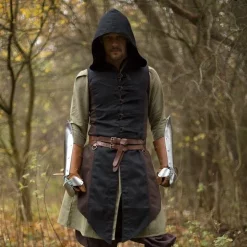This coat is inspired on the garments of Assassin Altaïr Ibn-La’Ahad in the world-famous computer game Assassins Creed. This coat is made of 100% cotton and is available in the sizes S-XXXL. It is suitable for Cosplay or LARP and can be combined with the Assassins Creed LARP throwing knives.
