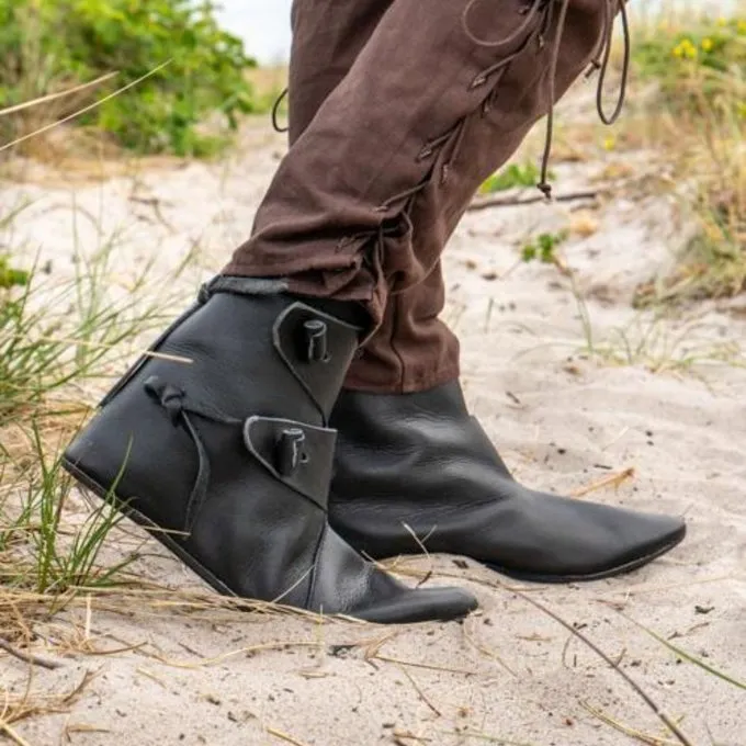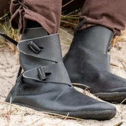 These beautiful leather boots are made after originals from the early Middle Ages. They are perfect for Viking reenactment and LARP. The boots are made of good quality leather, and they have rubber soles that you won’t slip during battles. So you can also walk on modern trails with these boots. You can fasten them around your ankles with the leather laces. These elegant and characteristic boots will complete your historic outfit!