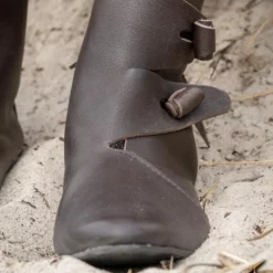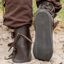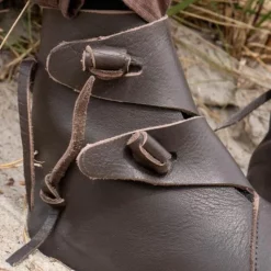 These beautiful leather boots are made after originals from the early Middle Ages. They are perfect for Viking reenactment and LARP. The boots are made of good quality leather, and they have rubber soles that you won’t slip during battles. So you can also walk on modern trails with these boots. You can fasten them around your ankles with the leather laces. These elegant and characteristic boots will complete your historic outfit!