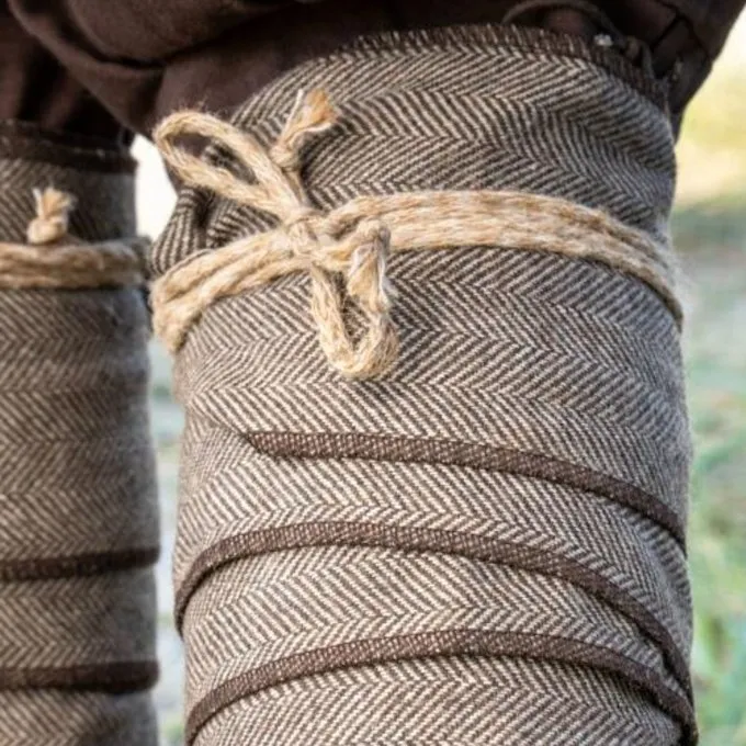 These leg wraps are indispensable for a Viking men’s outfit! The Vikings wore leg wraps for centuries, to protect their legs against the cold and rain. They are made in the historic herringbone fabric and the wool will keep your legs warm during cold evenings and in winter. They are ideal for LARP, reenactment, Cosplay and during LARP battles. In combination with wide Viking trousers, they complete your costume. Note: a fibula is not included. Fibulae for leg wrappings are available separately.