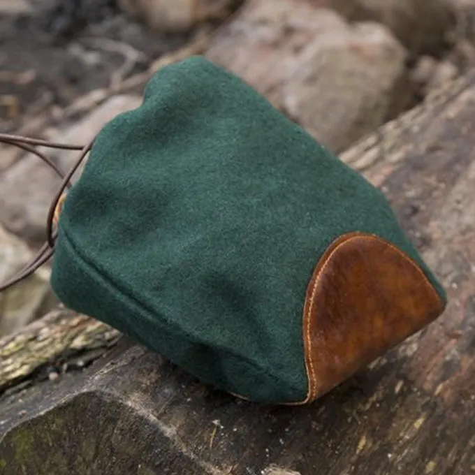 For centuries, pouches were used to store all kinds of valuables. Pouches were used from Antiquity to the Early Modern period. This pouch is a replica of luxury pouches that were used by merchants or wealthy farmers and citizens during the Middle Ages and the Renaissance. You can use it for Re-enactment, LARP or Cosplay from a merchant, the Medici or other influential Italian families, wealthy bourgeoisie, farmers, painters, craftsmen and the like. During a festival or event you can store all your modern necessities in here. This beautiful pouch is made from a wool mix and is decorated in the middle with a high quality leather trim. You can fasten the pouch and hang it on your belt with strong leather laces.