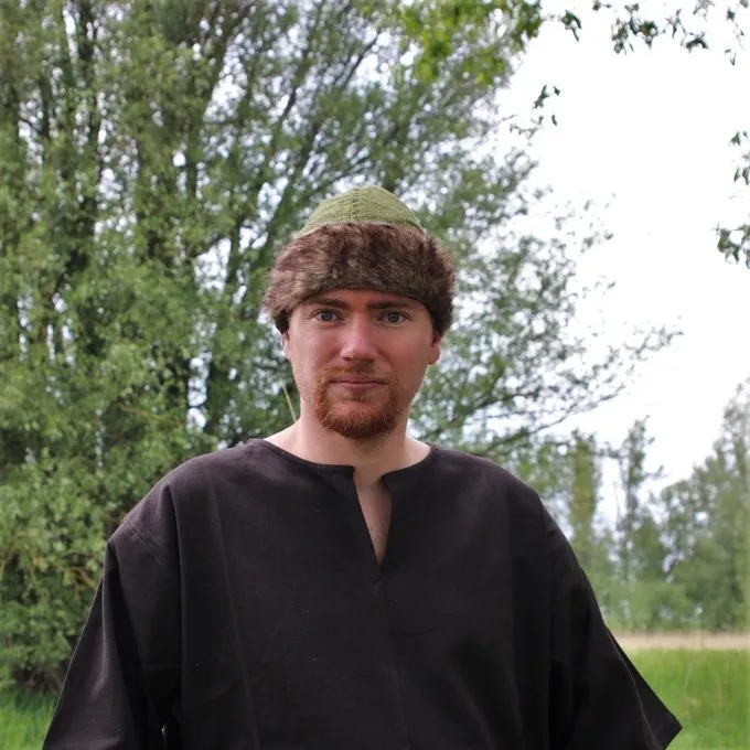 This Viking hat is based on several archaeological excavations and depictions. Hats like this were worn all over the Viking world, sometimes they ended in a tip that could be decorated.