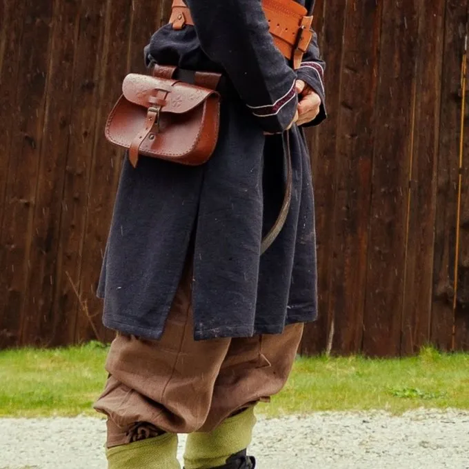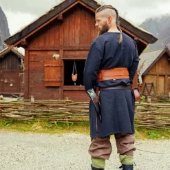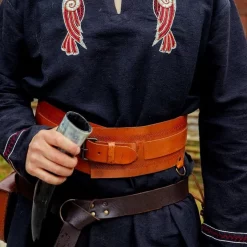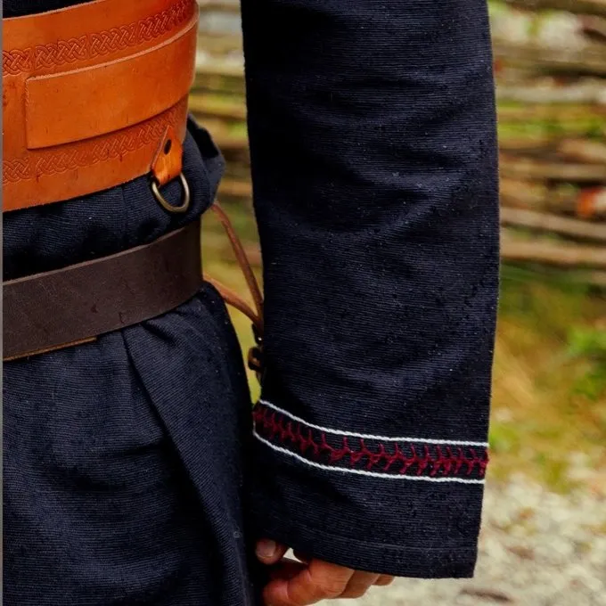This Viking tunic is embroidered with an image of the ravens Hugin & Munin. These ravens accompanied Odin the god of wisdom. The sleeves of this Viking tunic are also embroidered. This tunic is made of a somewhat coarser cotton that gives it an extra rustic look.