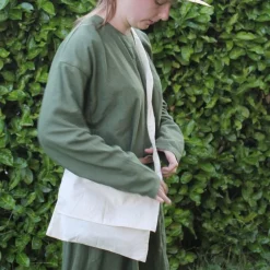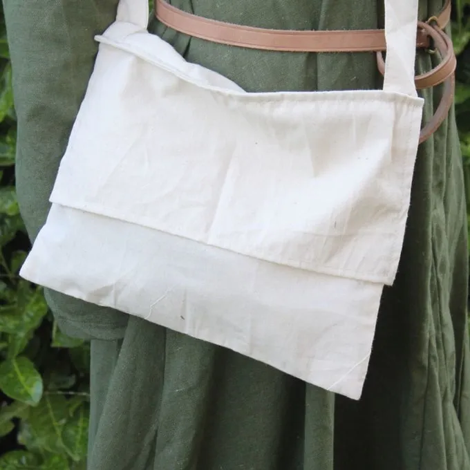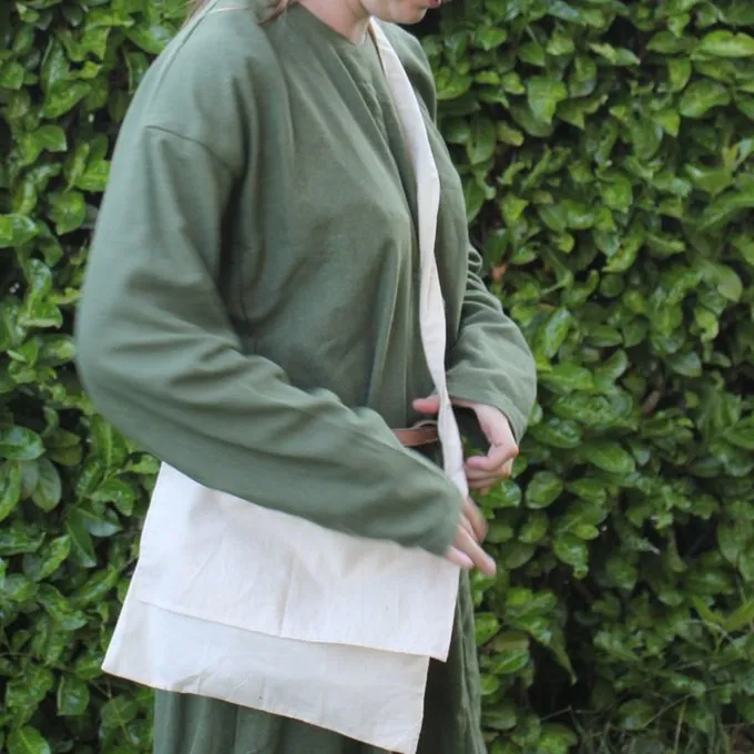 This bag is a replica of a pilgrims bag that is depicted in the cathedral of Valencia, Spain. It is made of canvas cotton and it measures 28 x 31,5 cm.