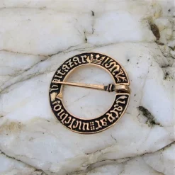 This Medieval ring brooch is a replica of an original made in France between 1350 and 1450. The brooch was excavated in England. The brooch contains the inscription ‘ihesus nazaren [us] rex iudeoru [m] “(Jesus of Nazareth, king of the Jews). Brooches like this were worn in a great variety all over medieval Europe.