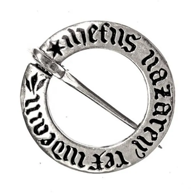 This Medieval ring brooch is a replica of an original made in France between 1350 and 1450. The brooch was excavated in England. The brooch contains the inscription ‘ihesus nazaren [us] rex iudeoru [m] “(Jesus of Nazareth, king of the Jews). Brooches like this were worn in a great variety all over medieval Europe.