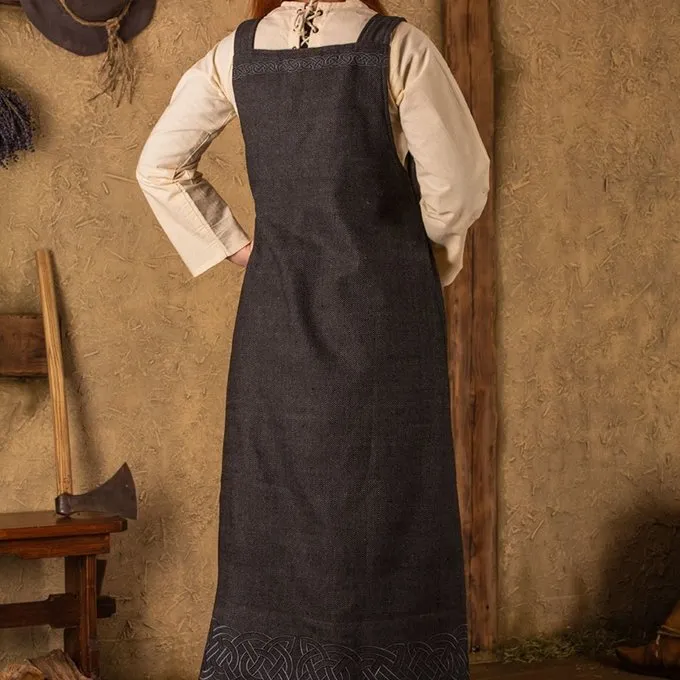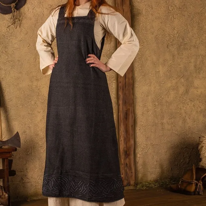 This hangeroc is suitable for Viking reenactment, LARP and Cosplay. In addition, this hangeroc has a beautiful herringbone motif, which makes it very unique. The dress reaches to the calves and is decorated with a knot motif at the bottom edge. So this hangeroc is the perfect accessory for Viking costumes.