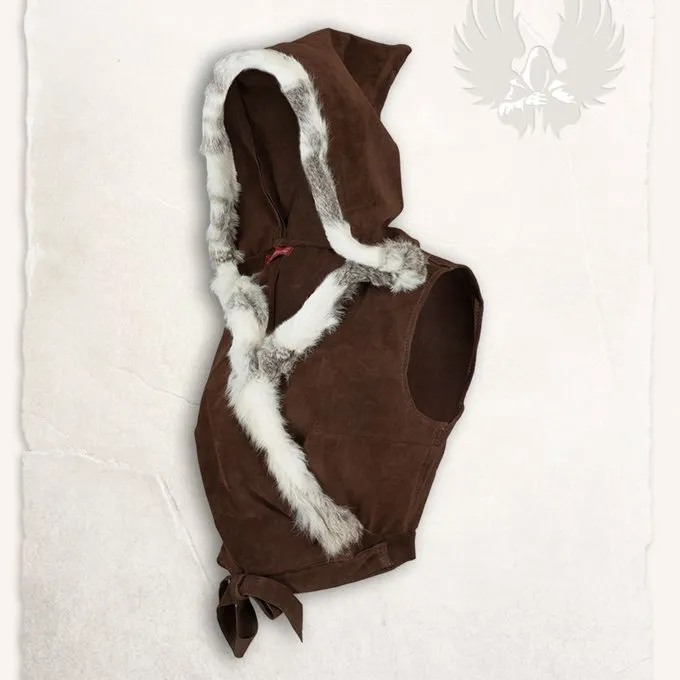 This unique top is made of high quality soft leather and rabbit fur. A beautiful top for fantasy festivals and Cosplay! The top has a hood trimmed with fur and it has laces to fasten it around your hips. You can combine this top with clothing of your choice, so it is suitable for every season. The rabbit fur comes from organic breeders in Germany, no fur from factory farming or hunting has been used.