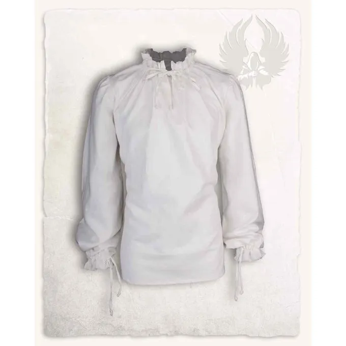 Made of light cotton and sewn in historical patterns, pirate shirt Bastian is perfect for pirate costumes on warm days. This shirt is very suitable as a first layer over your skin – cotton absorbs moisture very well. The cut is wide and is therefore suitable for warm and sunny days. The collar is decorated with quillings and has a lacing just below. The wide-cut sleeves close just below the wrist and give the shirt a casual look.