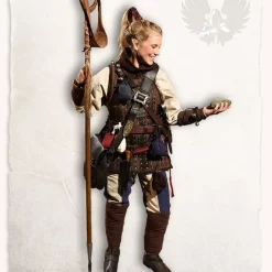 A striking doublet with a small stand-up collar. The doublet is closed at the front with laces and has stitched eyelets. The lining matches the colors on the outside. With this jacket you will be the center of every LARP meeting or medieval festival!