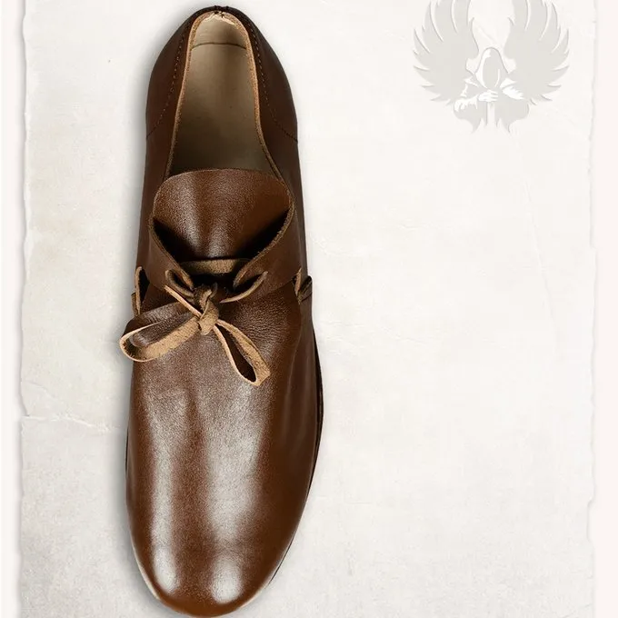 Material: leather / Color: brown / Size: 40 to 47 (sizes correspond with the European shoe sizes) / Delivery: pair / Based on a historical original