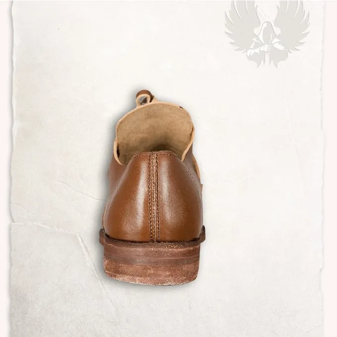 Made in Renaissance style, these Mytholon shoes are perfect for reenactment, LARP and Cosplay of 15th – 16th century characters. Such shoes can be seen in Renaissance paintings and drawings. The shoes are made of 100% leather. The soles are also made entirely of leather and have an elegant heel. The shoes are easy loafers and you can quickly put them on and take them off.