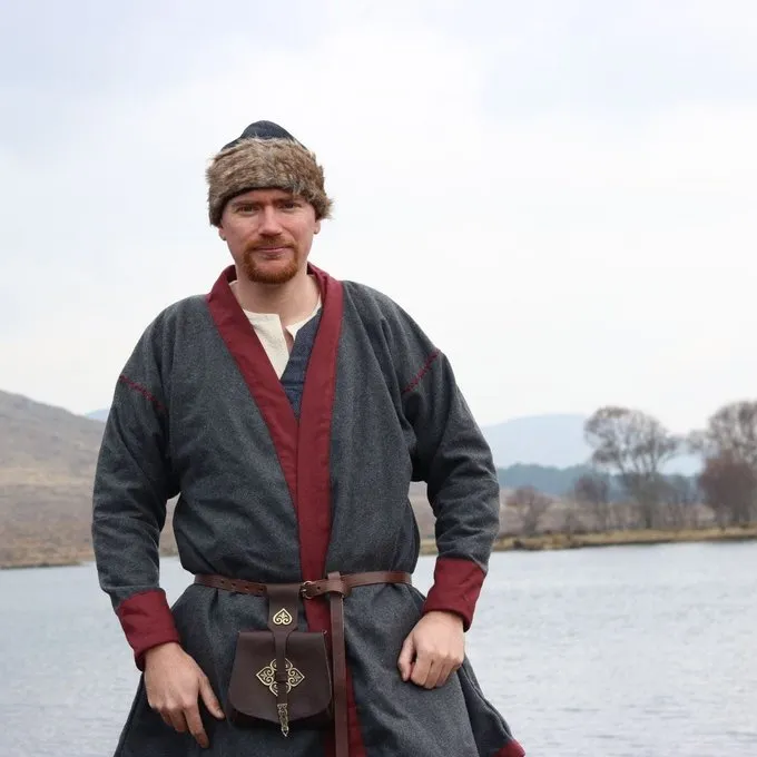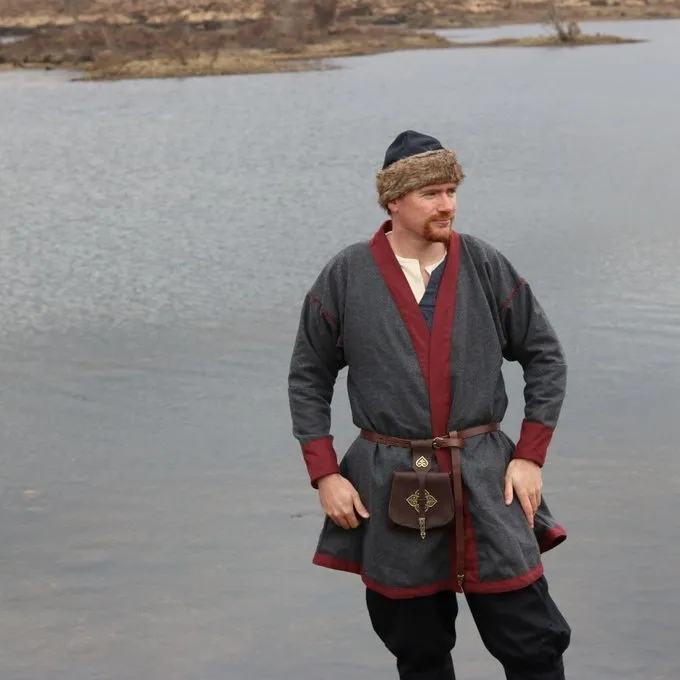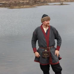 This caftan is suitable for viking reenactment, cosplay and LARP. The caftan is made of wool and cotton. The wool keeps you warm and protects you against light rain, in combination with the airy cotton. The kaftan is decorated with traditional cross embroidery. This gives the caftan a noble appearance.