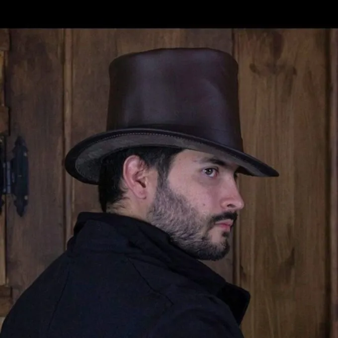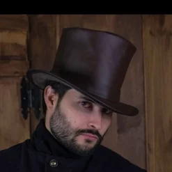 This hat is a replica of models that were popular worldwide in the 18th century. These hats are handmade by the Spanish manufacturer “Rawblade” and are made of high quality leather. Traditional craftsmanship and the highest quality standards guarantee durability and dimensional stability. A leather hat is a faithful companion in bad weather and an expressive accessory for many costumes. This hat is a top hat and very suitable for jesters, dark characters, but also real gentlemen, “Steampunk” and 18-19th century costumes.
