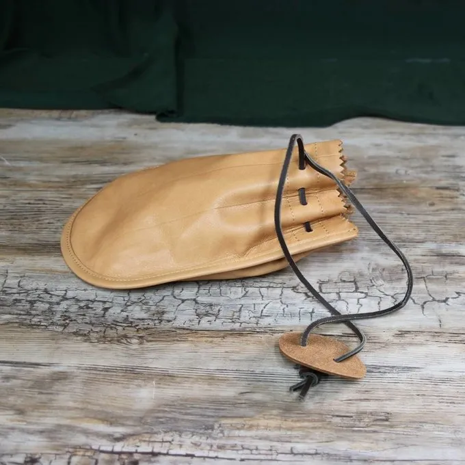 This leather pouch is made after Roman originals found in Drenthe, The Netherlands. It has a handy leather closing at the top and several compartments on the inside, very practical for re-enactment.