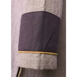 The herringbone motif is a historical weaving method that has been used for centuries, from the early Middle Ages to the present day in, for example, Harris Tweed. This tunic is based on original fragments found in Bernuthsfeld, Thorsberg, Hedeby and Birka.