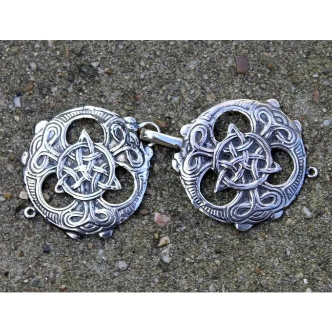This sterling silver garment closing is made of two parts and is decorated with Celtic images. It can easily be attached to fabric. Each part measures approx. 37 mm.