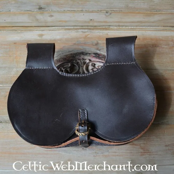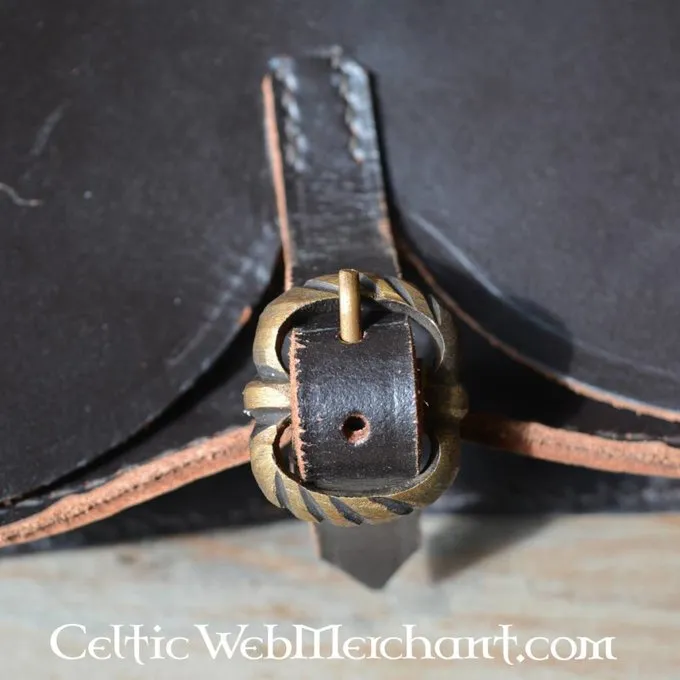 This bag is made after several originals that were worn between the 2nd half of the 14th century and the 1st half of the 15th century. It is made of 3 mm thick sturdy leather and is provided with a beautiful but inconspicuous buckle. The bag measures 25 x 11 x 4 cm.