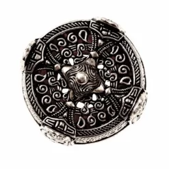 This brooch is a replica of a 10th century original excavated in Boge, Gotland, Sweden. The box or drum brooch was found almost exclusively in Gotland and was worn there between the 8th and 11th centuries by the Viking women of Gotland to fasten their hangerocs. Bead necklaces and other necklaces were often attached to these brooches.